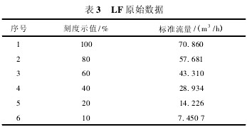 玻璃管轉(zhuǎn)子流量計(jì)具有結(jié)構(gòu)簡(jiǎn)單、工作可靠、線性刻度、讀數(shù)直觀等特點(diǎn),屬于變面積式流量計(jì)的一種,在工業(yè)計(jì)量中應(yīng)用廣泛。一般出廠時(shí)對(duì)玻璃管粗細(xì)均勻程度要求較高,但其粗糙的刻線使得其在使用中誤差非常大。由于玻璃管自身是錐體的,所以無(wú)法均勻分割刻線以達(dá)到與標(biāo)準(zhǔn)流量相接近的目的。為了達(dá)到預(yù)期使用目標(biāo),本著方便快捷、經(jīng)濟(jì)合理的原則,本文以LZB-50和LF百分比型兩種流量計(jì)為例,采用鐘罩式氣體流量標(biāo)準(zhǔn)裝置,介紹如何把刻度示值無(wú)限接近地修正到標(biāo)準(zhǔn)流量。 1.相關(guān)概念 刻度示值:玻璃管或坐標(biāo)紙上標(biāo)刻的讀數(shù),單位為m3/h,有時(shí)也用百分比。 標(biāo)準(zhǔn)流量:在101325Pa,20℃狀態(tài)下的流量,單位為m3/h。 引用誤差:(刻度示值-標(biāo)準(zhǔn)流量)/量程上限×100%。 2.LZB-50型流量計(jì) (1)把轉(zhuǎn)子流量計(jì)按玻璃管上的刻度示值做一遍檢定,得到如表1所示數(shù)據(jù),從中可以看出刻度示值為“100”和“80”時(shí)的引用誤差非常大,已經(jīng)無(wú)法正常使用(JJG257—2007《浮子流量計(jì)檢定規(guī)程》中規(guī)定引用誤差最大為5%)。 (2)用坐標(biāo)紙測(cè)量一下玻璃管上刻度示值“100”與“80”之間有多少小格(1小格=1mm),測(cè)得“100”與“80”之間有66mm。 (3)把刻度示值“100”對(duì)應(yīng)的標(biāo)準(zhǔn)流量105.080m3/h減去刻度示值“80”對(duì)應(yīng)的標(biāo)準(zhǔn)流量85.764m3/h,計(jì)算出“100”與”80”之間相差的標(biāo)準(zhǔn)流量。即 105.080-85.764=19.316m3/h (4)計(jì)算出刻度示值“100”與“80”之間每毫米對(duì)應(yīng)多少m3/h。即 19.316/66=0.29266m3/h (5)以標(biāo)準(zhǔn)流量105.08m3/h為基準(zhǔn),找出標(biāo)準(zhǔn)流量為100m3/h時(shí)對(duì)應(yīng)到玻璃管上的位置。即 105.08-100=5.08m3/h 5.08/0.29266=17.4mm (6)由(5)中的兩個(gè)式子可以得出,標(biāo)準(zhǔn)流量為100m3/h和105.080m3/h時(shí)在玻璃管上的位置相差17.4mm。在坐標(biāo)紙上找一起始刻線,并在玻璃管左側(cè)與“100”橫豎對(duì)齊并固定好,從坐標(biāo)紙的起始刻線處向下移動(dòng)17.4mm,該位置就是標(biāo)準(zhǔn)流量為100m3/h時(shí)的位置,在此處畫一橫線作標(biāo)記,記數(shù)為100。以后把浮子升到該位置就可較為正確地得到100m3/h的標(biāo)準(zhǔn)流量。 7)上述步驟只得到刻度示值“100”的修正,同理可以得出80與60,60與40,40與20相差的距離,通過(guò)向下調(diào)整而得到所需修正值。如果我們認(rèn)為某點(diǎn)滿足使用不用修正,那么就可以對(duì)照玻璃管上的刻線直接畫過(guò)來(lái)。 (8)修正完所有刻度示值后,按照坐標(biāo)紙上的刻度示值重新檢定。得到如表2所示數(shù)據(jù),從中可看出刻度示值為“100”與“80”時(shí)的引用誤差已變?yōu)?.28%,0.39%,明顯優(yōu)于修正前。 3.LF百分比型流量計(jì) 按玻璃管上的百分比刻度做其對(duì)應(yīng)的標(biāo)準(zhǔn)流量,如表3所示。從表3可看出,假如需要60m3/h、50m3/h、40m3/h、30m3/h的標(biāo)準(zhǔn)流量時(shí),我們是無(wú)法較為正確把浮子調(diào)到玻璃管上其對(duì)應(yīng)的位置的,因此需要通過(guò)下列步驟得到我們想要的結(jié)果。 (1)根據(jù)上述數(shù)據(jù)用Excel等軟件繪制LF曲線圖轉(zhuǎn)換成線性公式得出標(biāo)準(zhǔn)流量;也可用下列公式y(tǒng)=ax+b(a為直線斜率,b為直線截距)求出標(biāo)準(zhǔn)流量。 (2)經(jīng)計(jì)算得a=0.7104,b=0.3728,即y=0.7104x+0.3728。我們已經(jīng)知道刻度示值“10”對(duì)應(yīng)的標(biāo)準(zhǔn)流量為7.4507m3/h,那么只要以此為基準(zhǔn),向上找出60m3/h、50m3/h、40m3/h、30m3/h與7.4507m3/h之間的距離即可。 (3)由(2)中式子得出x=(y-0.3728)/0.7104,把所求的流量點(diǎn)流量(60m3/h,50m3/h,40m3/h,30m3/h)依次設(shè)為y值,得x值分別為83.9mm,69.8mm,55.7mm,41.7mm。 (4)在坐標(biāo)紙上找一起始位置,并在玻璃管刻線左或右側(cè)與刻度示值“10”橫豎對(duì)齊并固定好,用鉛筆做一標(biāo)記,記數(shù)為10。因?yàn)槲覀儾恍枰疫@個(gè)流量點(diǎn),所以全部標(biāo)完后要擦除該記數(shù)。 (5)以記數(shù)為10的起始刻線為基準(zhǔn),向上到達(dá)41.7,55.7,69.8,83.9mm處時(shí)分別做標(biāo)記,畫一橫線,這些橫線標(biāo)記即為所求流量點(diǎn),記數(shù)為30m3/h,40m3/h,50m3/h,60m3/h。 4結(jié)論 利用價(jià)格低廉的坐標(biāo)紙?jiān)诓AЧ苌蠘?biāo)注刻線,克服了玻璃管流量計(jì)自身出廠時(shí)的缺陷,更加有效地提高了流量計(jì)的精度,為工業(yè)計(jì)量節(jié)約了采買新流量計(jì)的成本。